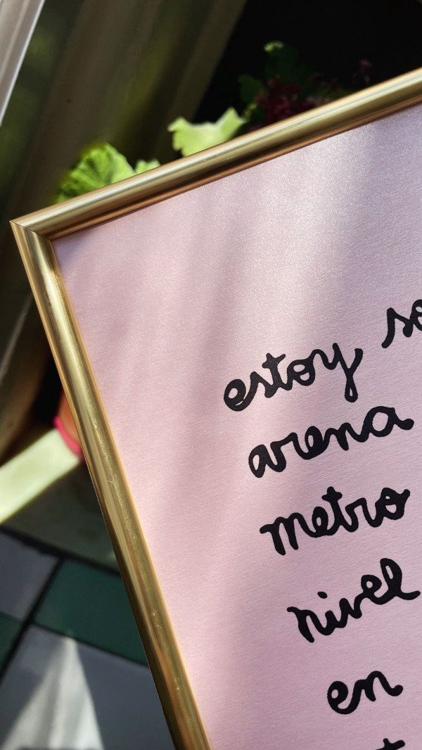 Impresión en papel perlado rosa 120 gramos + marco dorado 15 x 21 centímetros.
